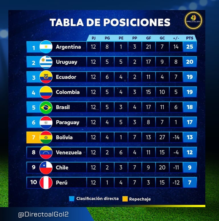 Con la jornada 12 en curso, el panorama de las selecciones sudamericanas comienza a esclarecerse. A continuación, te presentamos la tabla de posiciones y un análisis de cada equipo en esta fase decisiva de la Clasificación CONMEBOL.
